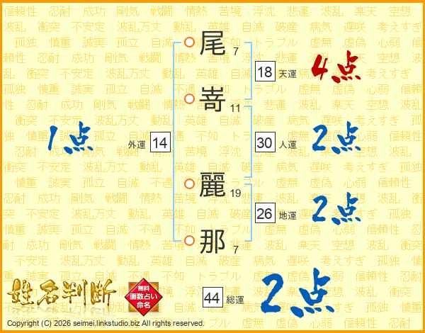 尾嵜麗那さんの総運は44画の2点!