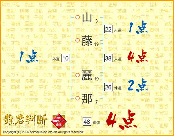 山藤麗那さんの総運は48画の4点!