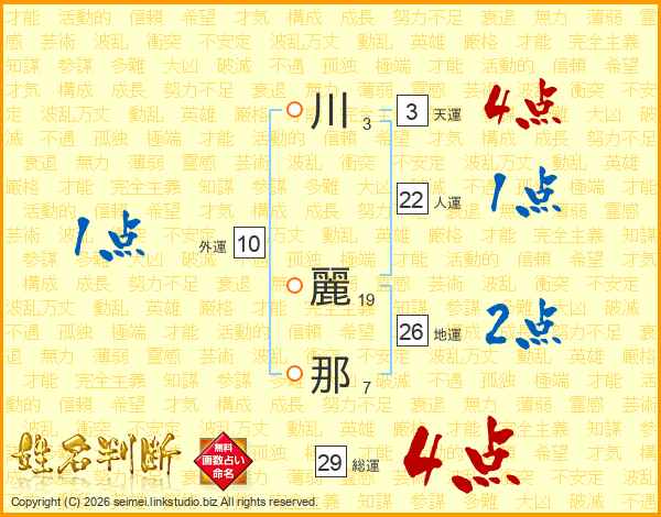 川(3画) 麗(19画)那(7画)
