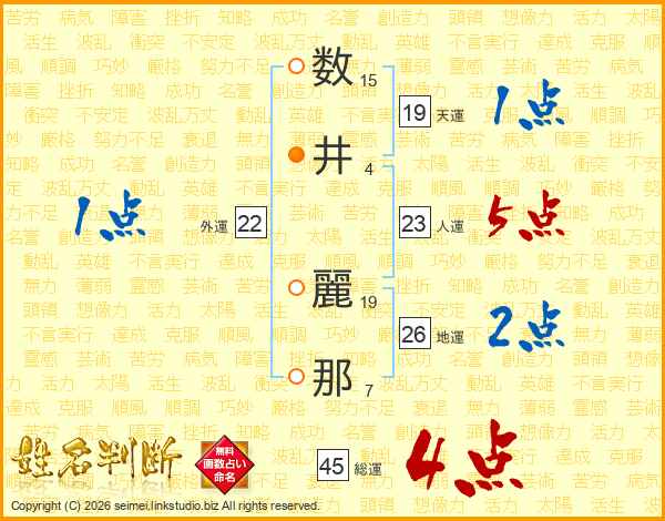 数(15画)井(4画) 麗(19画)那(7画)