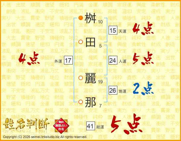 桝田麗那さんの総運は41画の5点!