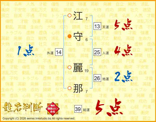 江守麗那さんの総運は39画の5点!