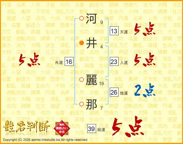 河井麗那さんの総運は39画の5点!