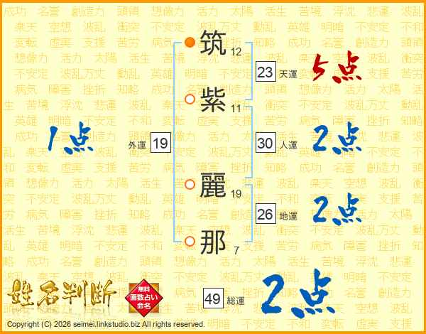 筑(12画)紫(11画) 麗(19画)那(7画)