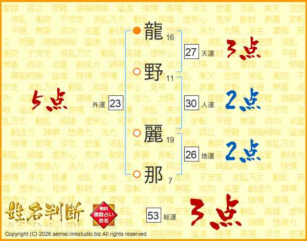 龍野麗那さんの総運は53画の3点!