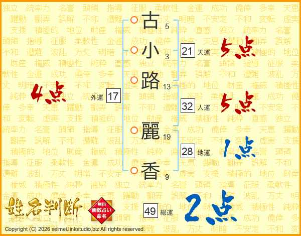 古小路麗香さんの総運は49画の2点!