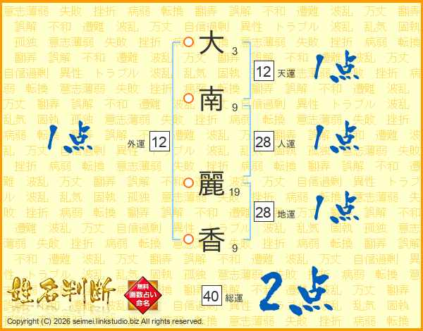 大(3画)南(9画) 麗(19画)香(9画)