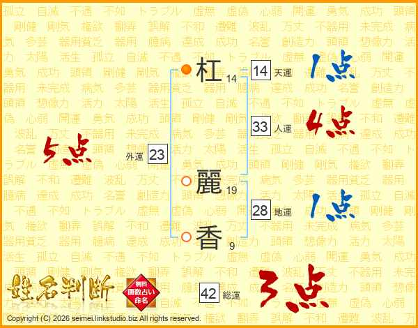 杠麗香さんの人運は33画の4点!