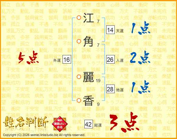 江(7画)角(7画) 麗(19画)香(9画)