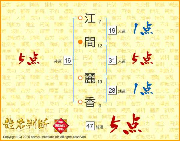 江間麗香さんの総運は47画の5点!