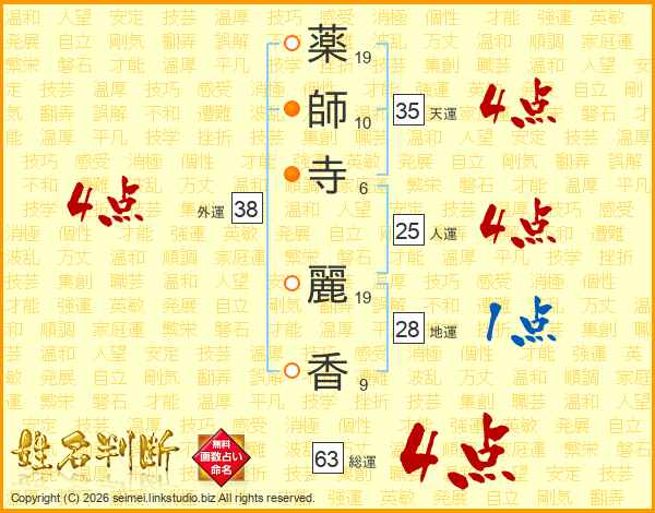薬師寺麗香さんの外運は38画の4点!