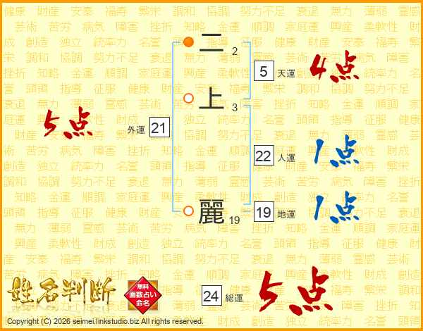 二上麗さんの外運は21画の5点!