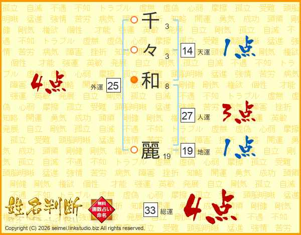 千々和麗さんの総運は33画の4点!