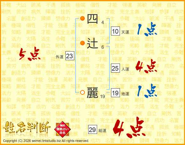四辻麗さんの総運は29画の4点!