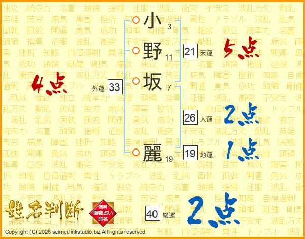 小野坂麗さんの外運は33画の4点!