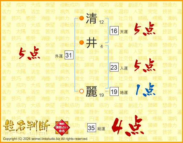 清(12画)井(4画) 麗(19画)