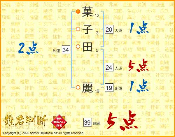 菓子田麗さんの総運は39画の5点!