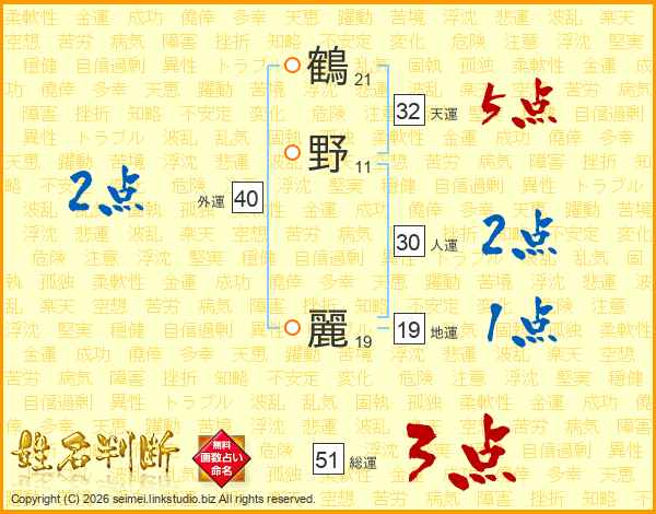鶴野麗さんの天運は32画の5点!
