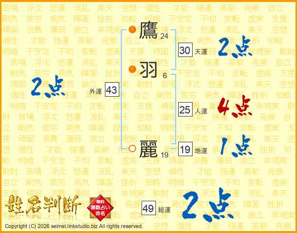鷹羽麗さんの総運は49画の2点!