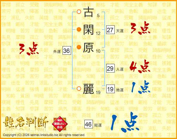 古閑原麗さんの総運は46画の1点!