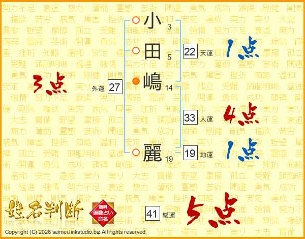 小田嶋麗さんの総運は41画の5点!