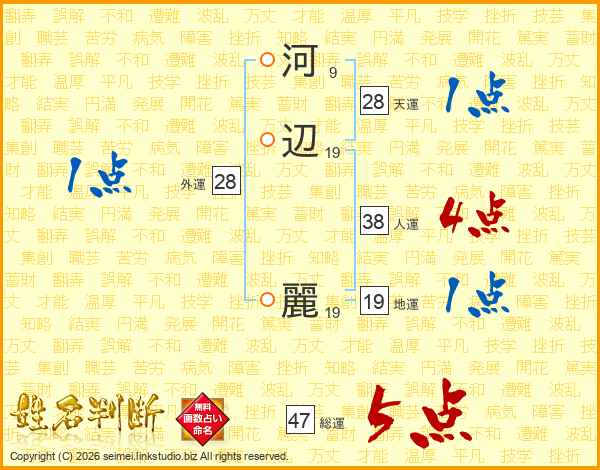 河辺麗さんの総運は47画の5点