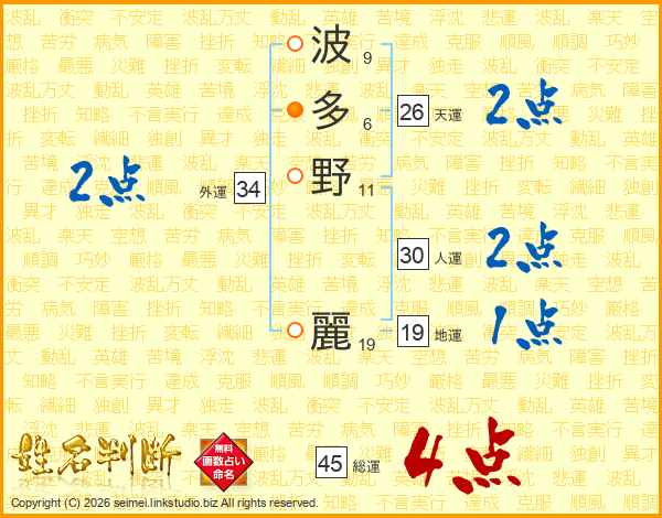 波多野麗さんの総運は45画の4点!