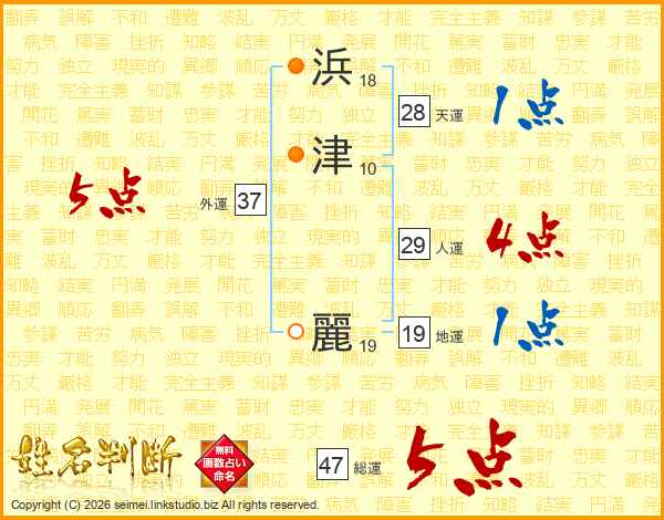 浜津麗さんの総運は47画の5点!