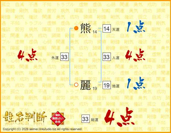 熊(14画)  麗(19画)