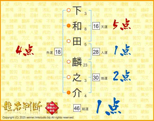 下(3画)和(8画)田(5画) 麟(23画)之(3画)介(4画)