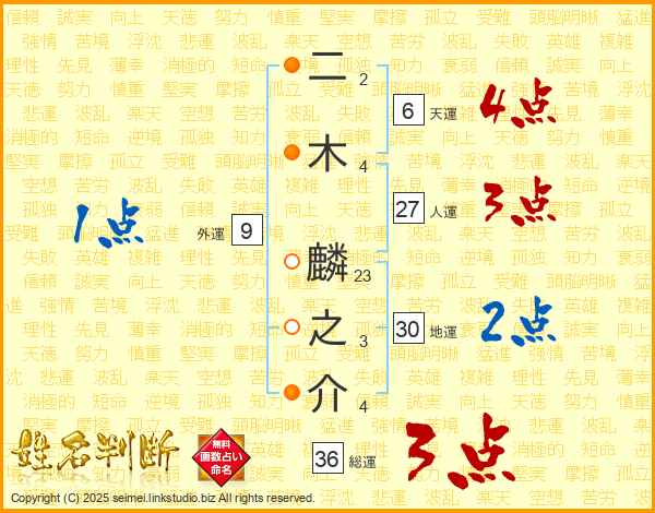 二(2画)木(4画) 麟(23画)之(3画)介(4画)