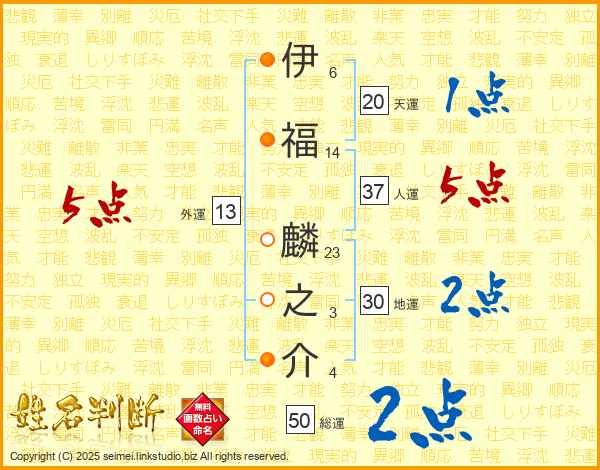 伊(6画)福(14画) 麟(23画)之(3画)介(4画)