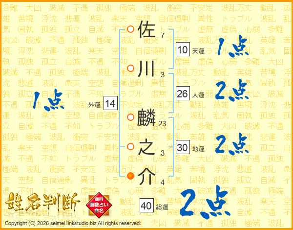 佐川麟之介さんの総運は40画の2点!
