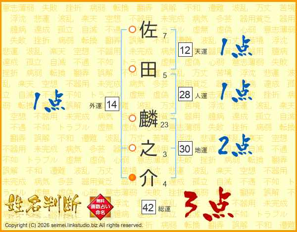 佐田麟之介さんの総運は42画の3点!