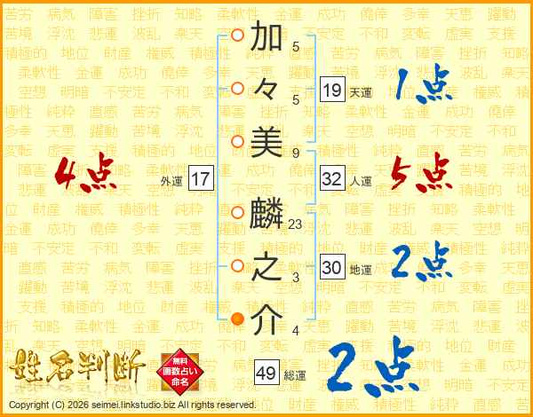 加々美麟之介さんの総運は49画の2点!