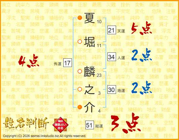 夏堀麟之介さんの外運は17画の4点!