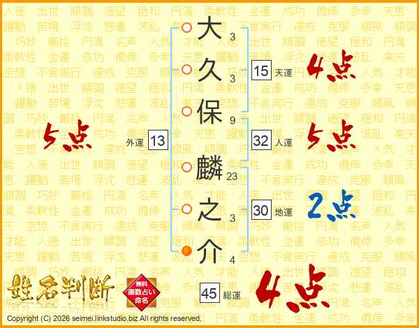 大(3画)久(3画)保(9画) 麟(23画)之(3画)介(4画)