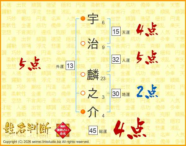 宇治麟之介さんの総運は45画の4点!
