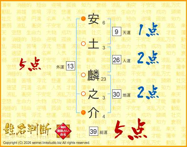 安(6画)土(3画) 麟(23画)之(3画)介(4画)