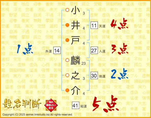 小(3画)井(4画)戸(4画) 麟(23画)之(3画)介(4画)