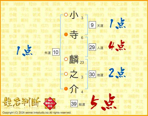 小寺麟之介さんの総運は39画の5点!