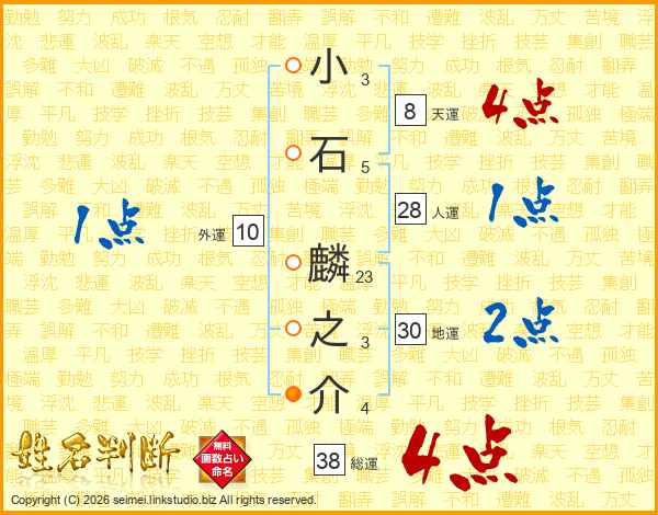 小(3画)石(5画) 麟(23画)之(3画)介(4画)