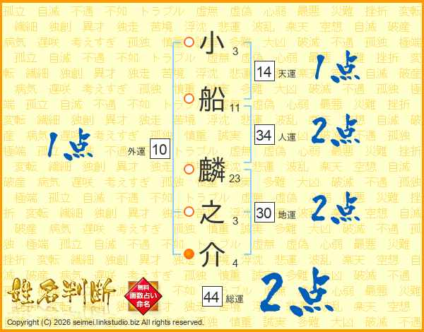小船麟之介さんの総運は44画の2点!