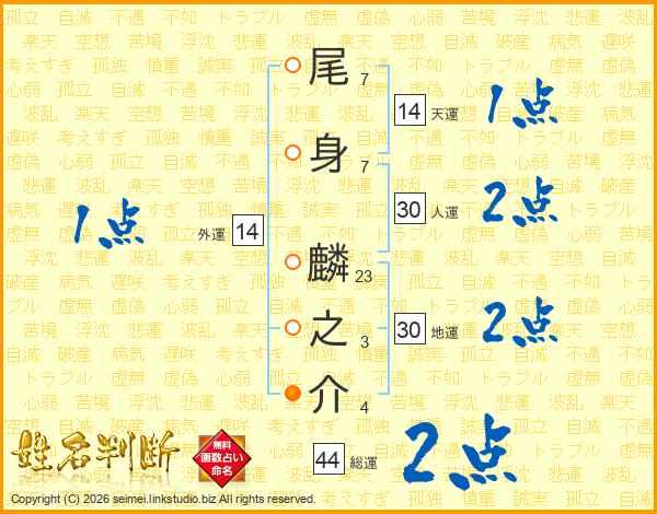 尾(7画)身(7画) 麟(23画)之(3画)介(4画)