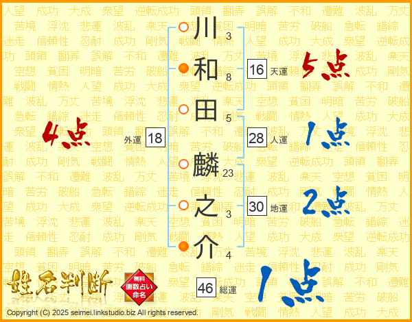 川(3画)和(8画)田(5画) 麟(23画)之(3画)介(4画)