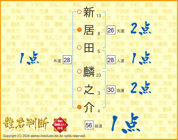 新居田麟之介さんの天運は26画の2点!