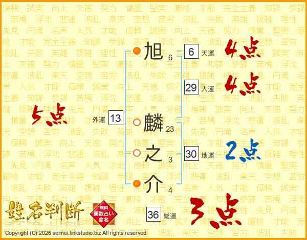 旭麟之介さんの総運は36画の3点!