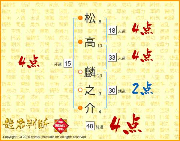 松(8画)高(10画) 麟(23画)之(3画)介(4画)