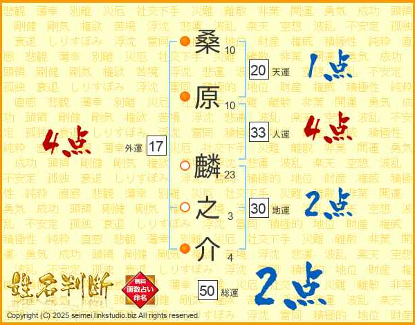 桑(10画)原(10画) 麟(23画)之(3画)介(4画)