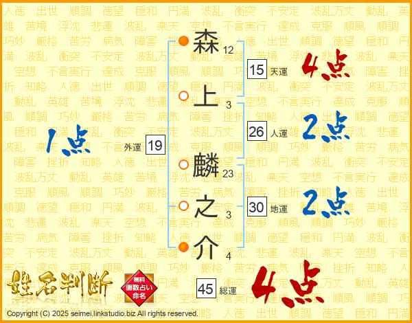森(12画)上(3画) 麟(23画)之(3画)介(4画)